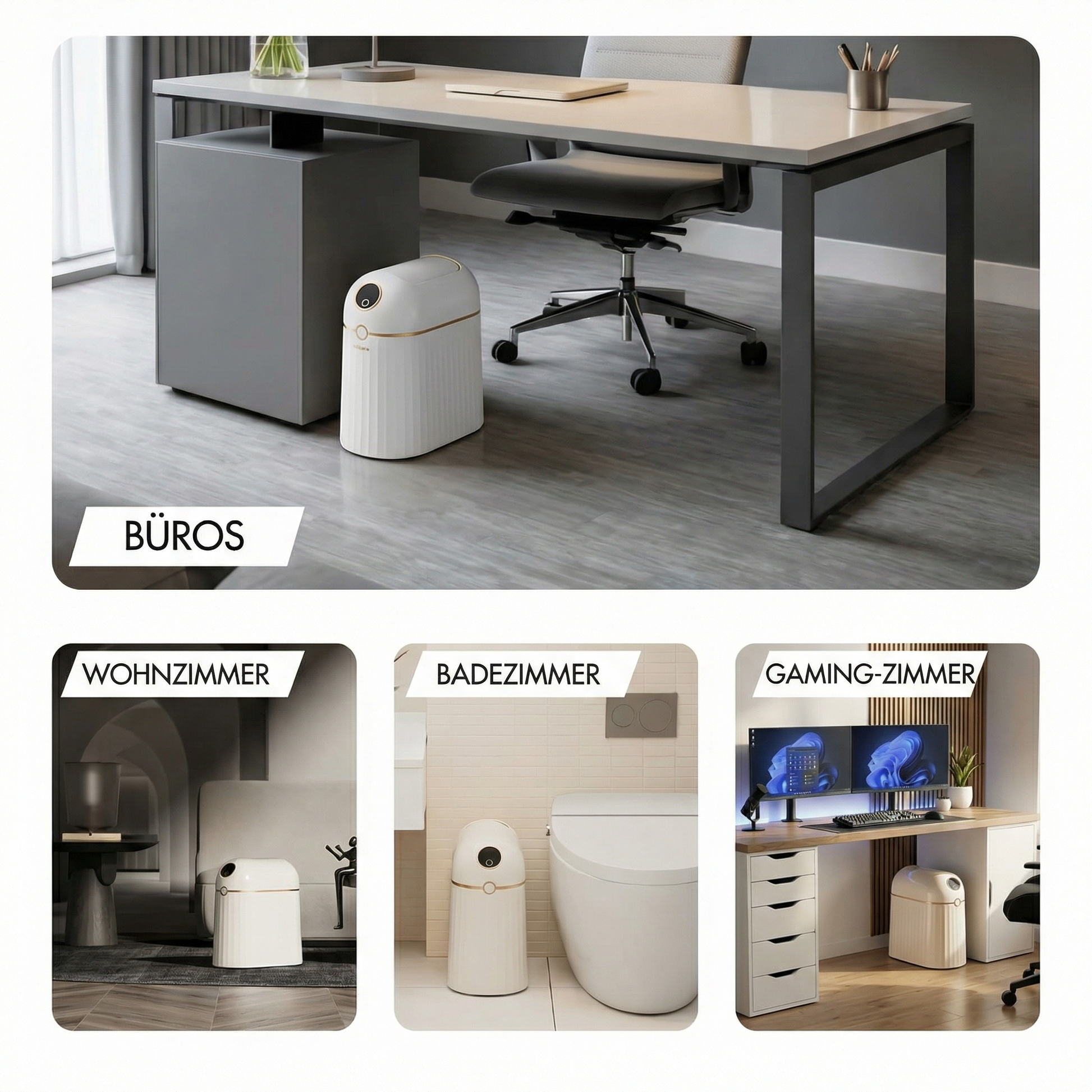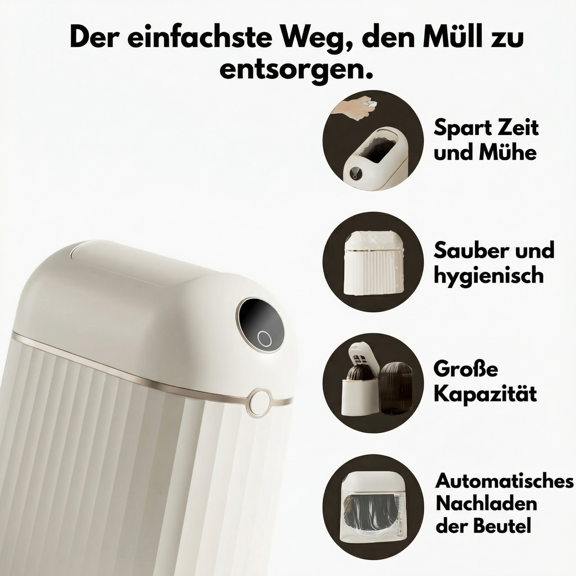 - Berührungsfrei: Der Deckel öffnet sich automatisch – kein Kontakt erforderlich.